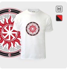 Рисунок оберега символ Белобога выполняется на футболке методом сублимационной термопечати на сэндвич ткани, что обеспечивает долговечность и износостойкость. Краски яркие и насыщенные. Стойкость от выстирывания.