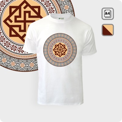 Рисунок оберега Валькирия выполняется на футболке методом сублимационной термопечати на сэндвич ткани, что обеспечивает долговечность и износостойкость. Краски яркие и насыщенные. Стойкость от выстирывания.