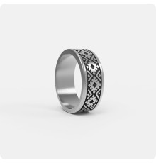 Кольцо Оберег Звезда Руси (Квадрат Сварога) из серебра